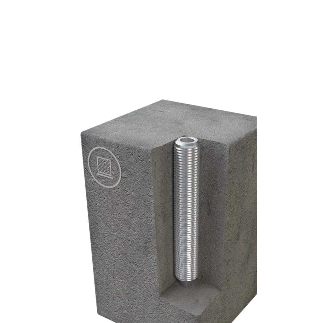 Standartmäßig wir die Dübelhülse mit einer Abdeckkappe aus weißem Kunststoff geliefert. Alternativ kann auch eine Abdeckkappe aus Edelstahl bestellt werden. Zudem kann eine passende Teleskopstange zum Einsatz kommen, um den Steckbolzen auch in größeren Höhen sicher in die Dübelhülse einsetzen zu können.