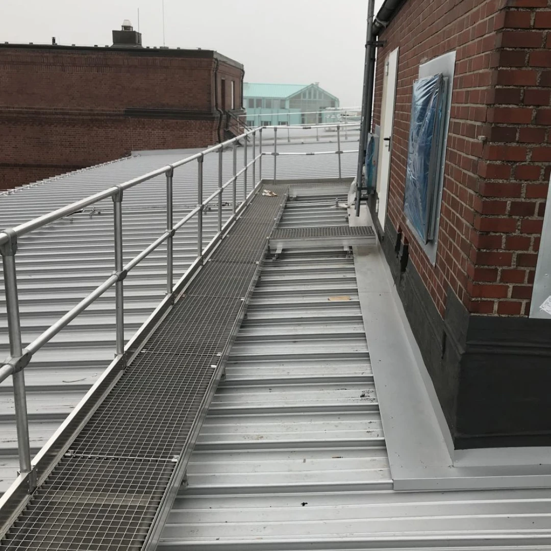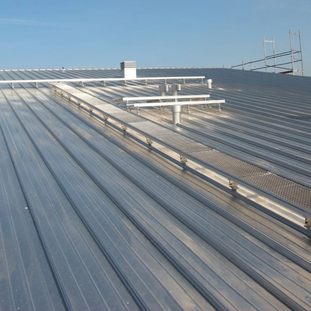 Die Kalzip Dachwegesysteme gewährleisten für alle Nutzer ein freies und sicheres Bewegen auf einer rutschhemmenden Oberfläche. Durch Prüfungen der Konstruktion und insbesondere der Befestigung auf den Kalzip Stehfalzprofiltafeln ist sichergestellt, dass Funktion und Langlebigkeit der Kalzip Dacheindeckung erhalten bleiben. Die Dachwegesysteme können auf allen Kalzip Profiltypen und Dächern eingesetzt werden. Bei den Dachwegesystemen unterscheiden wir zwischen Safety Plus und Standard.
