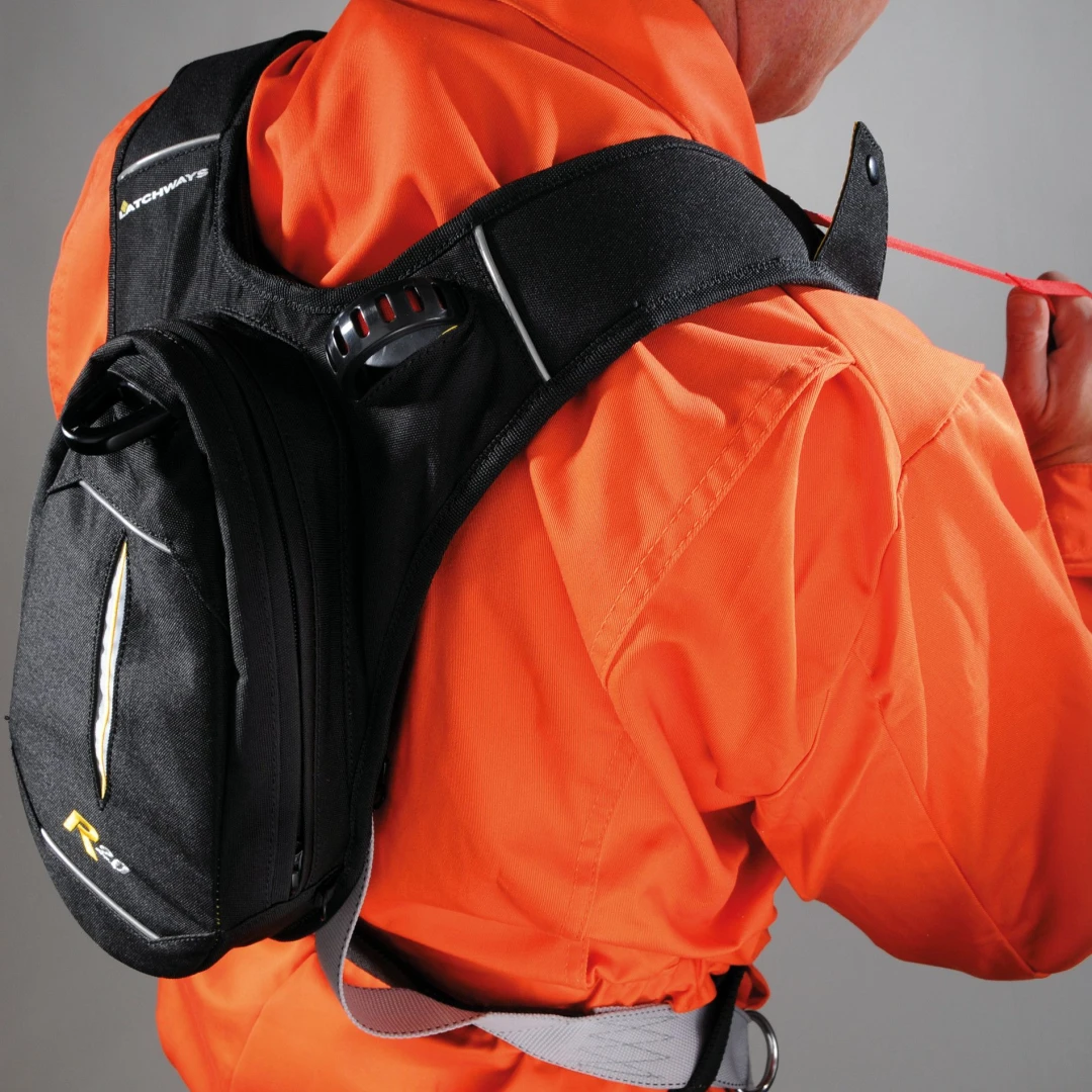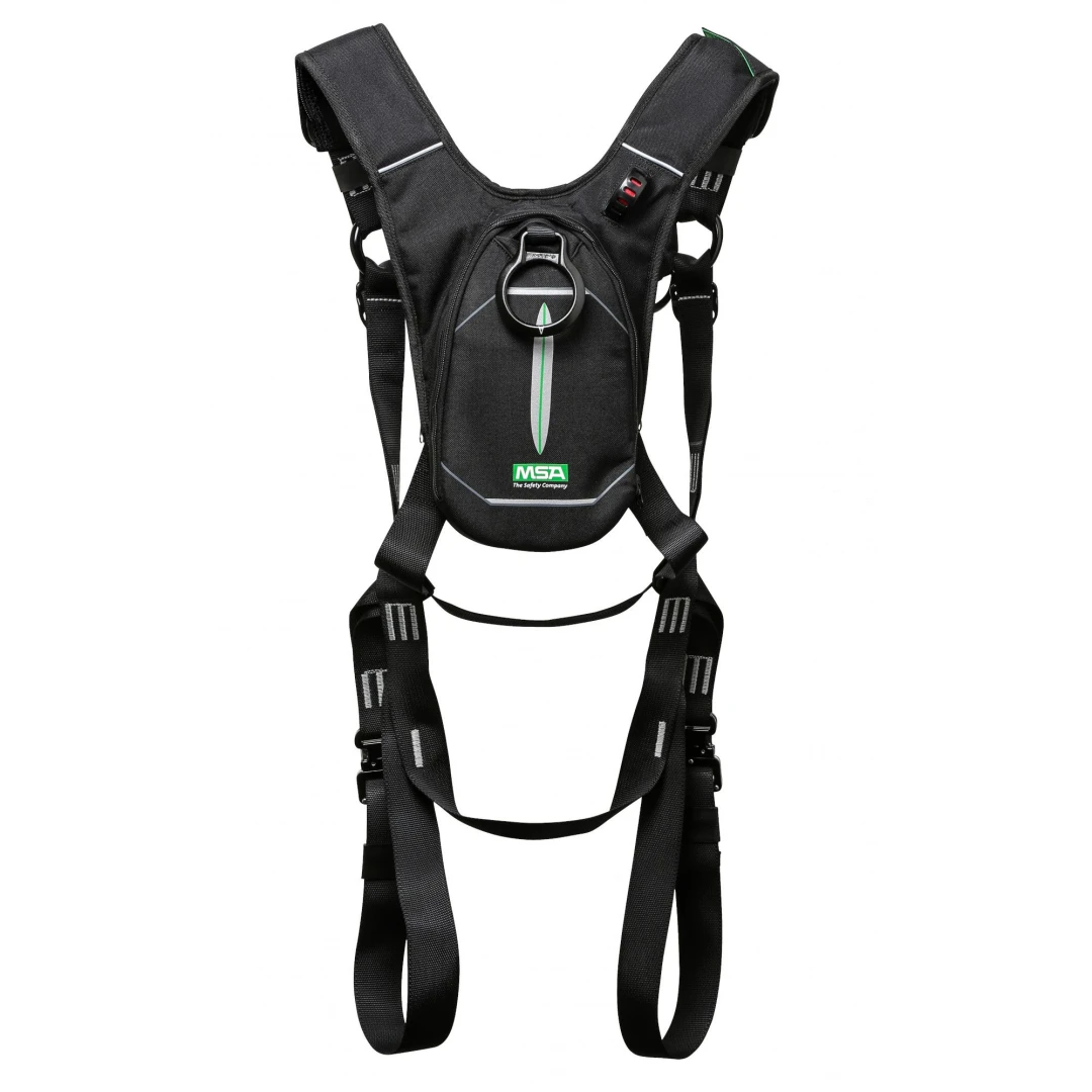 Das MSA Latchways Personal Rescue Device ist ein einzigartiger Auffanggurt mit integriertem Rettungsgerät. Das Rettungsgerät befindet sich im Rucksack am Rücken des Gurtes und ermöglicht es dem Benutzer, sich bei einem Sturz selbstständig aus der hängenden Position zu retten.