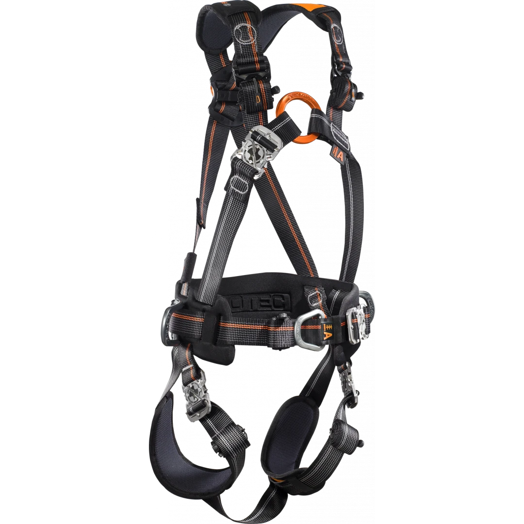 Der Ignite Trion hat Oktalock-Klickschnallen aus rostfreiem Stahl. Diese Schnallen verfügen über Einstellmöglichkeiten, die ein einfaches Verstellen ermöglichen und zugleich sicherstellen, dass sich der Gurt während der Arbeit nicht versehentlich lockert. Somit muss der Gurt während der Arbeit nicht nachjustiert werden.