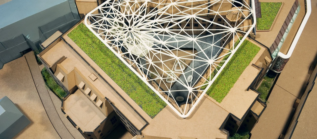 Eurosafe werkte samen met Buiting Machinebouw en Staalconstructie om zoveel mogelijk van het werk vóór transport naar de locatie samen te voegen. “Voor de bouw hadden we al veel contact, bijvoorbeeld over het atriumdak. Er is een staalconstructie aangebracht door Buiting. Deze constructie is nodig voor de bevestiging van de railsystemen die wij monteren om veilig op de glazen overkapping te kunnen werken.” Eurosafe komt op locatie op het moment dat de complete staalconstructie en de glaspanelen zijn gemonteerd. “Op locatie is het een kwestie van het in elkaar zetten van ons bouwpakket. Op deze wijze werken we efficiënt met elkaar samen. Om dit voor elkaar te krijgen, is een goede communicatie tussen alle partijen bij een project als dit onmisbaar. Onze engineer had daarom continu contact met samenwerkingspartners. Zo krijg je het beste resultaat! De aanvoer van al het bouwmateriaal is over water. Dat betekent dat Eurosafe alleen met gereedschap op locatie hoeft te komen. Zeker fijn voor een binnenstedelijk project.”